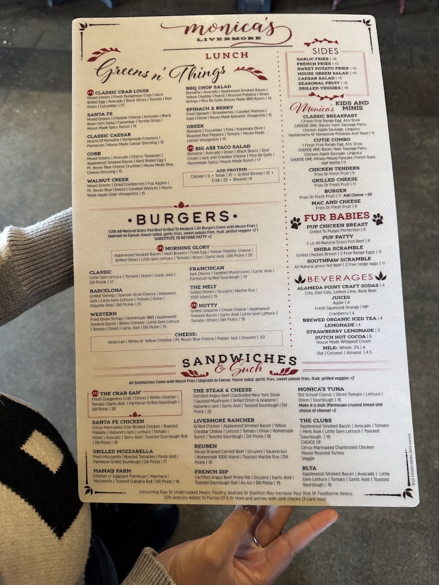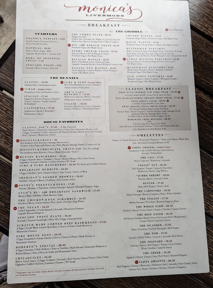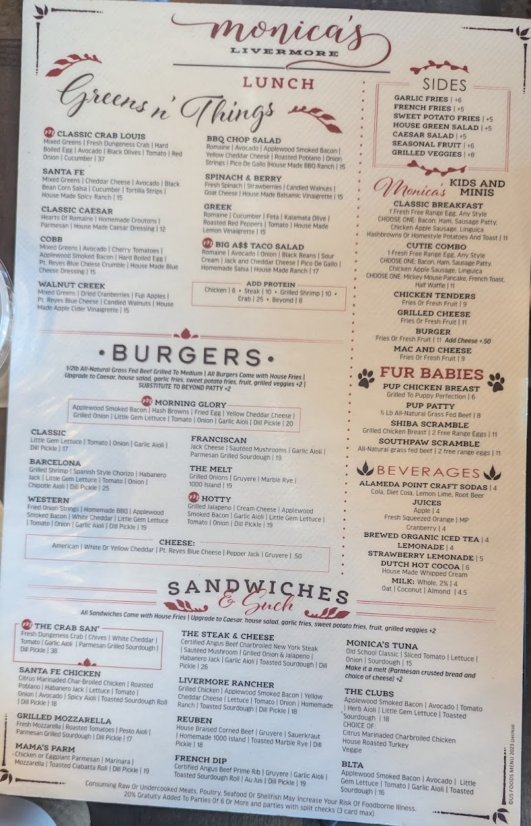 Monica's Livermore Menu